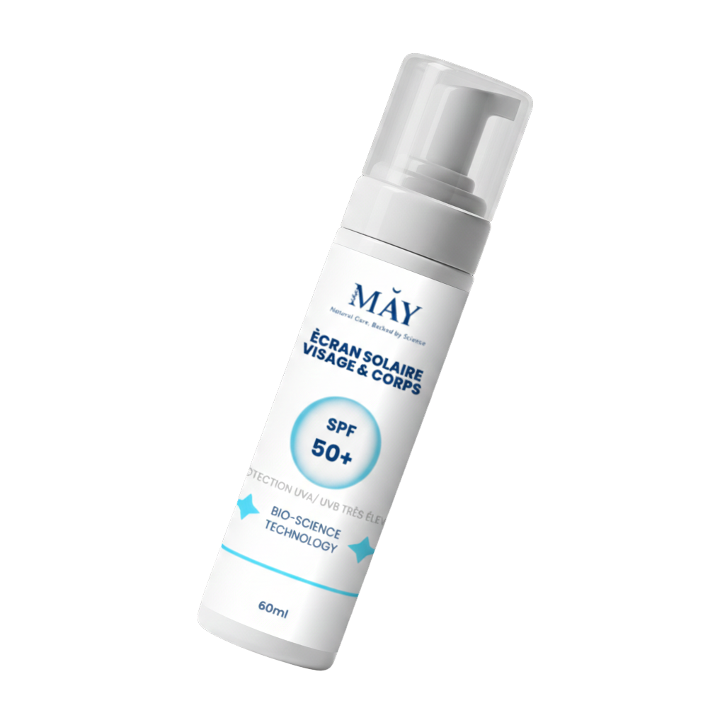 MAY vous offre une protection solaire quotidienne pour le visage et le corps, sans compromis sur le confort ou l'esthétique, grâce à une formule sans résidu blanc.